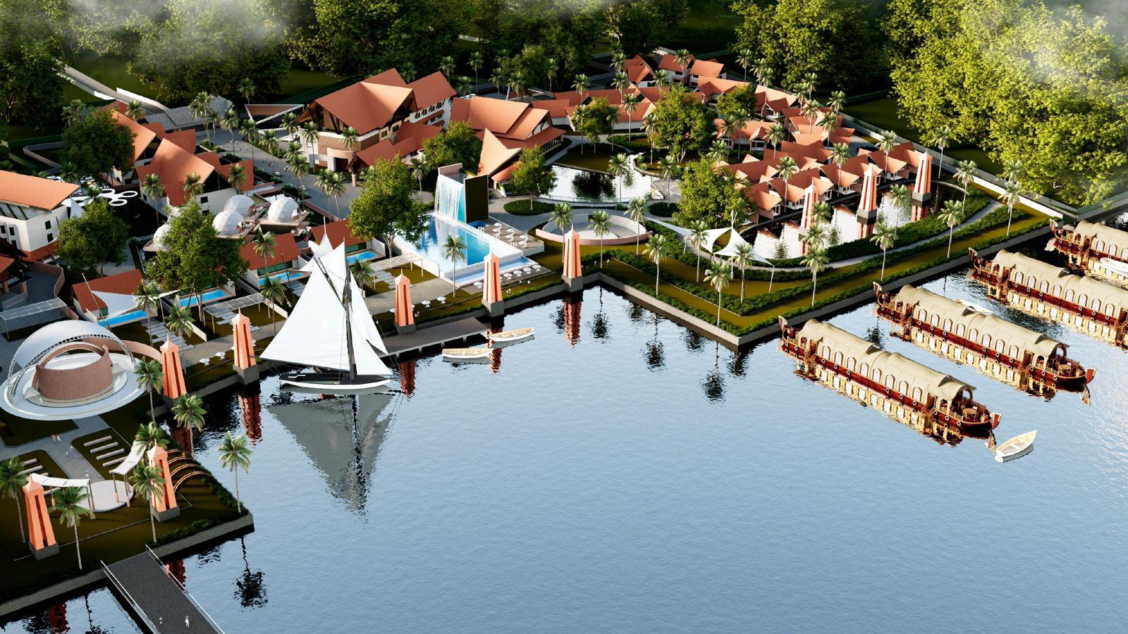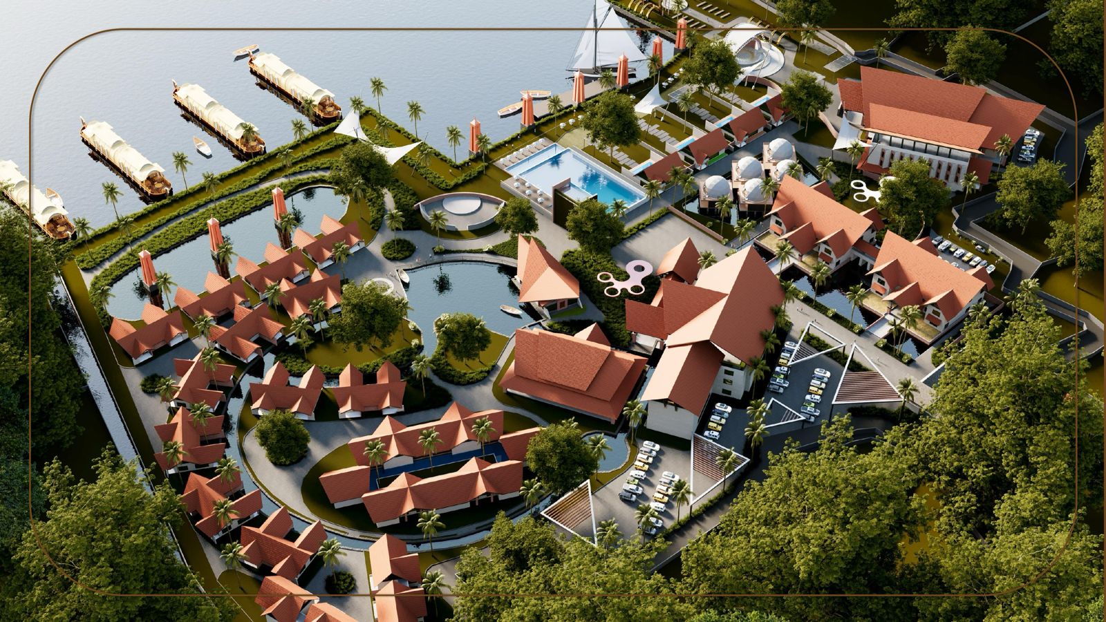This resort project is envisioned as a serene retreat that blends contemporary architecture with the natural beauty of Mannancheri, Alappuzha. Spread across 1,67,000 sq ft, the design focuses on creating an immersive hospitality experience through open, airy spaces, lush landscape integration, and seamless indoor, outdoor transitions. Each structure is placed to capture natural light, lake breezes, and scenic views, ensuring guests feel connected to the environment at every step.