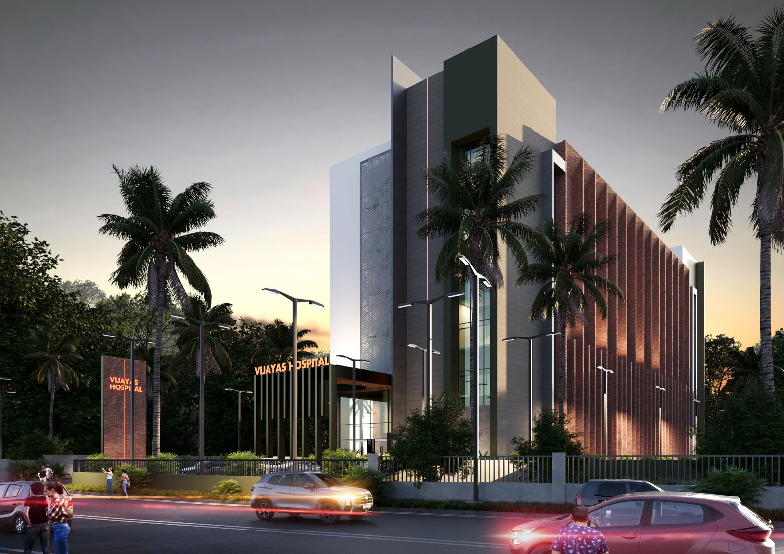 Vijayas Hospital in Kottarakara is designed to provide a modern, patient-centric healthcare environment that prioritizes comfort, safety, and operational efficiency. The architectural approach focuses on clear circulation, functional zoning, and integration of modern medical facilities.